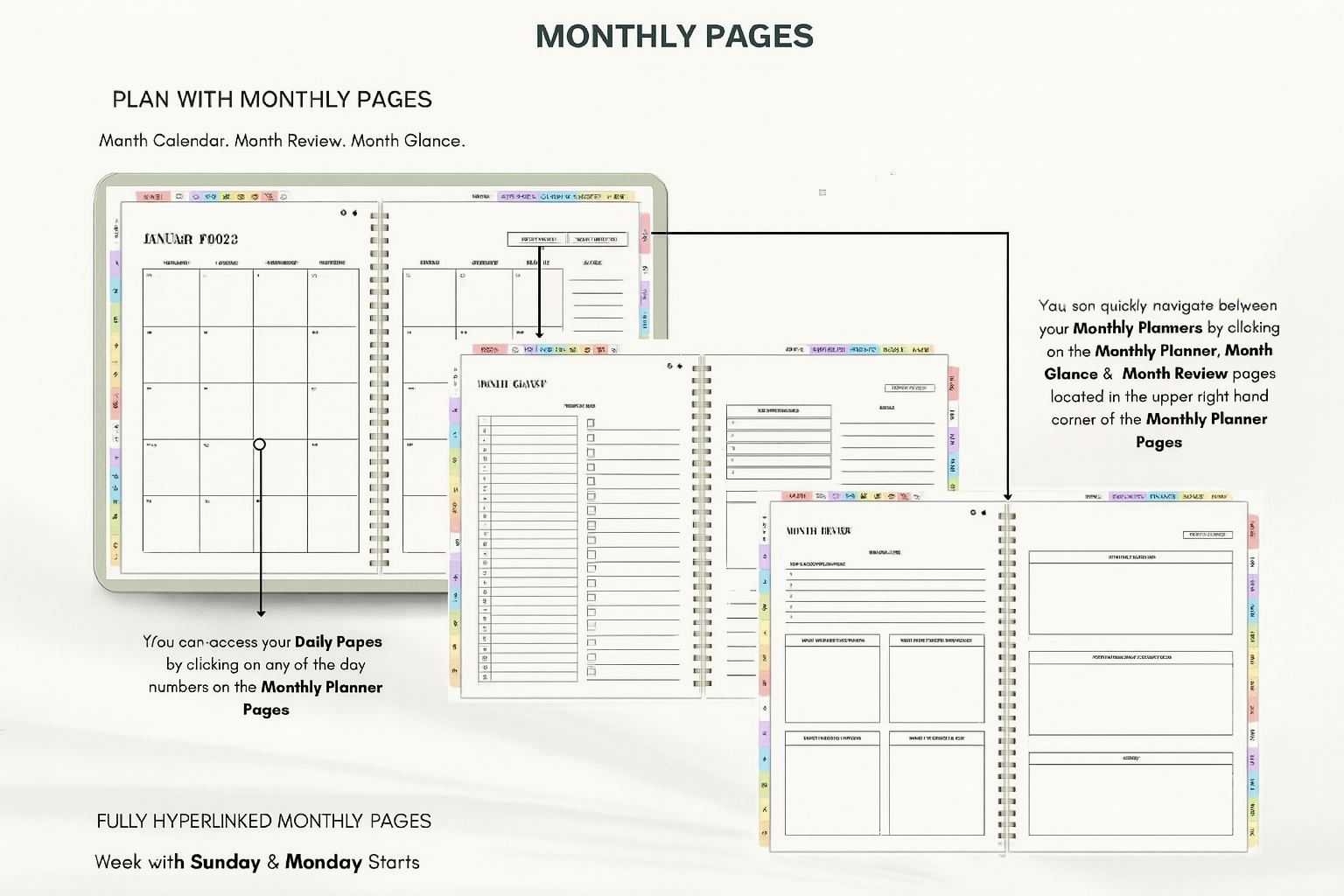 ✅ Fully Hyperlinked Navigation – Jump effortlessly between months, weeks, and sections