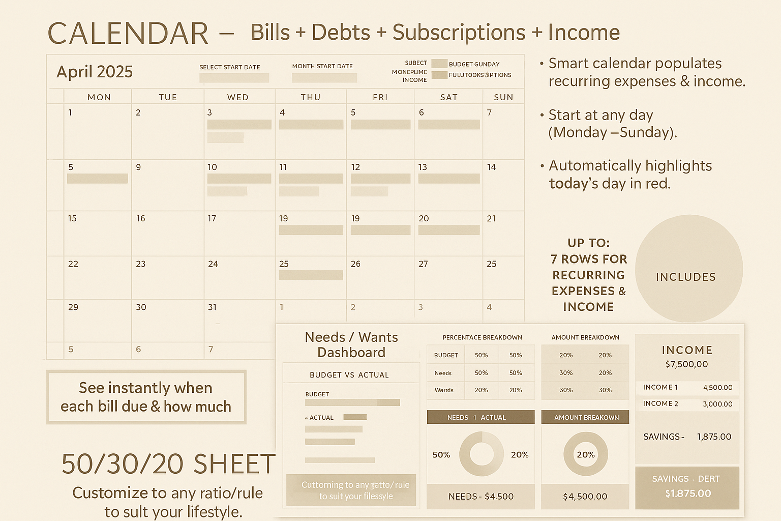 Enter your recurring income/expenses once and watch the magic happen! The planner auto-fills across 12 months with options for zero-based budgeting or rollover balances.